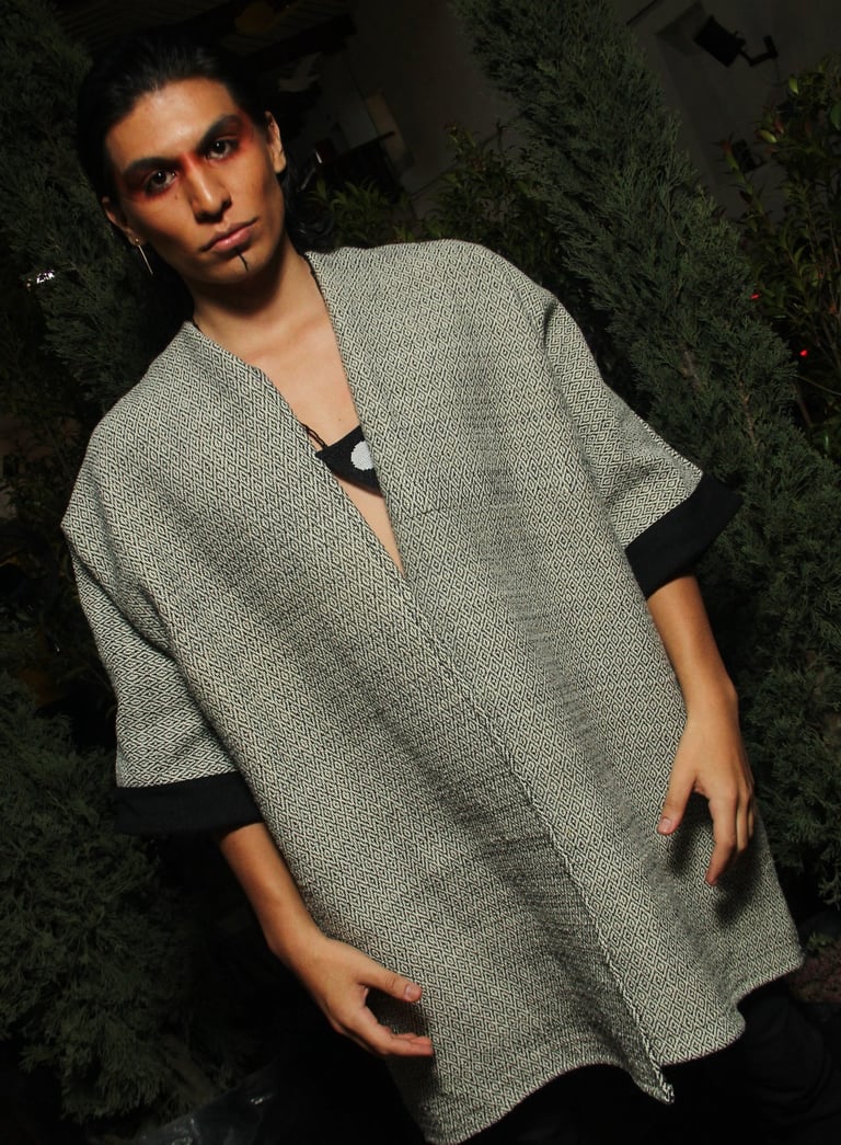Por otro lado, la marca Averina se enfocó en la moda sostenible y presentó una colección de chaquetas slow fashion. Cada prenda estaba confeccionada a partir de telas recicladas y técnicas de producción sostenibles, demostrando que es posible estar a la vanguardia de la moda sin dañar al medio ambiente. Las joyas en filigrana que complementan los outfits son de la marca Gosh Joyas.